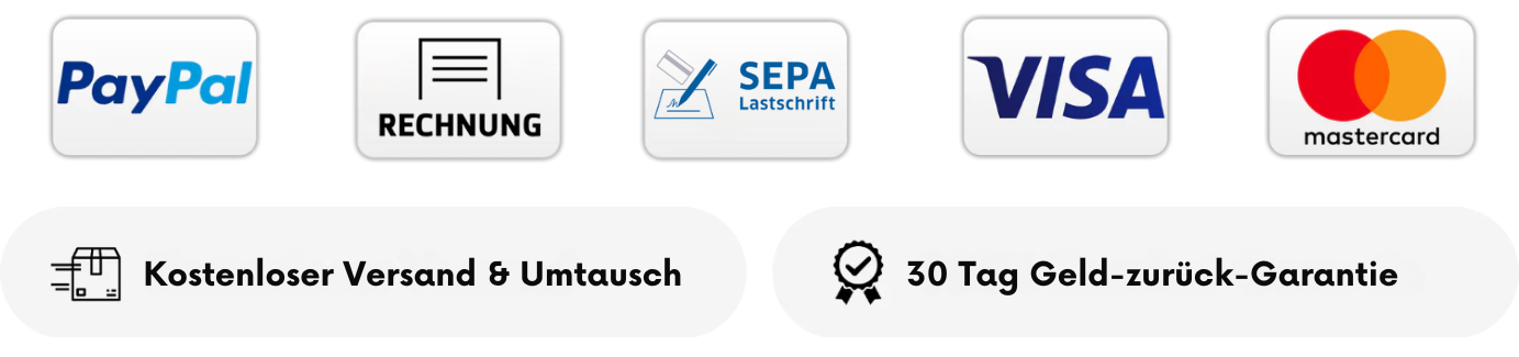 Wir bieten alle gängigen Zahlungsarten an inklusive Kauf auf Rechnung. Beim Kauf auf Rechnung können Sie auch problemlos nach dem Erhalt bezahlen.